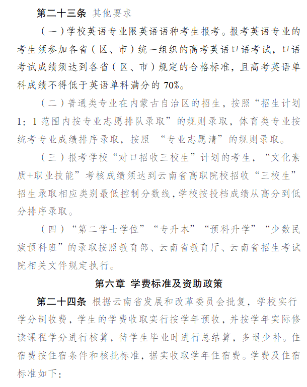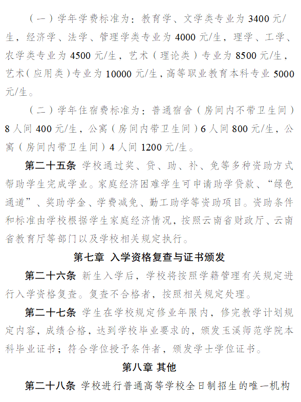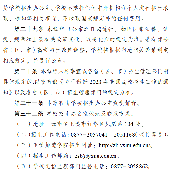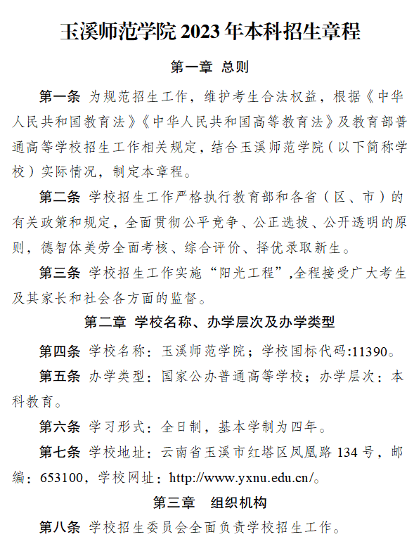 玉溪师范学院2023年本科招生章程