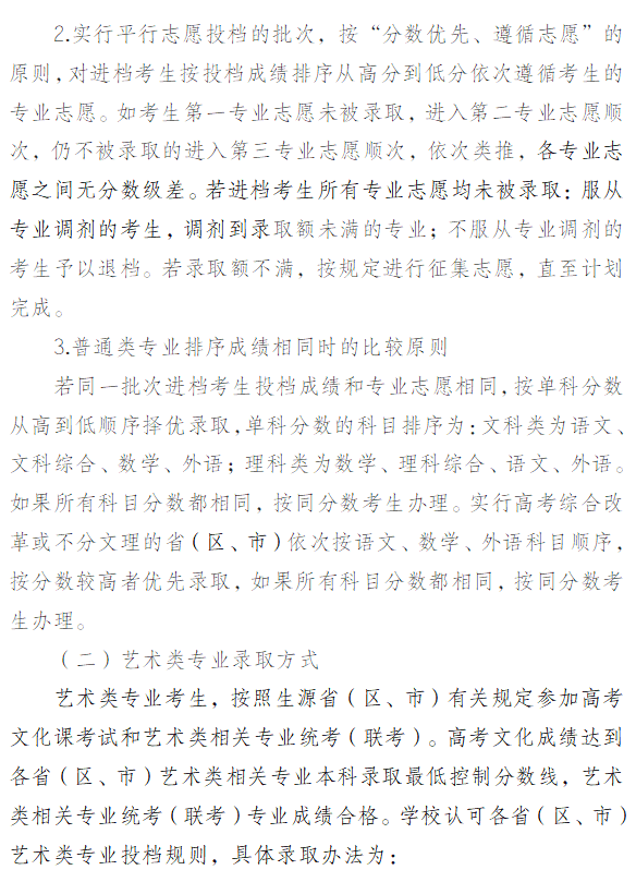 投档规则(艺术)